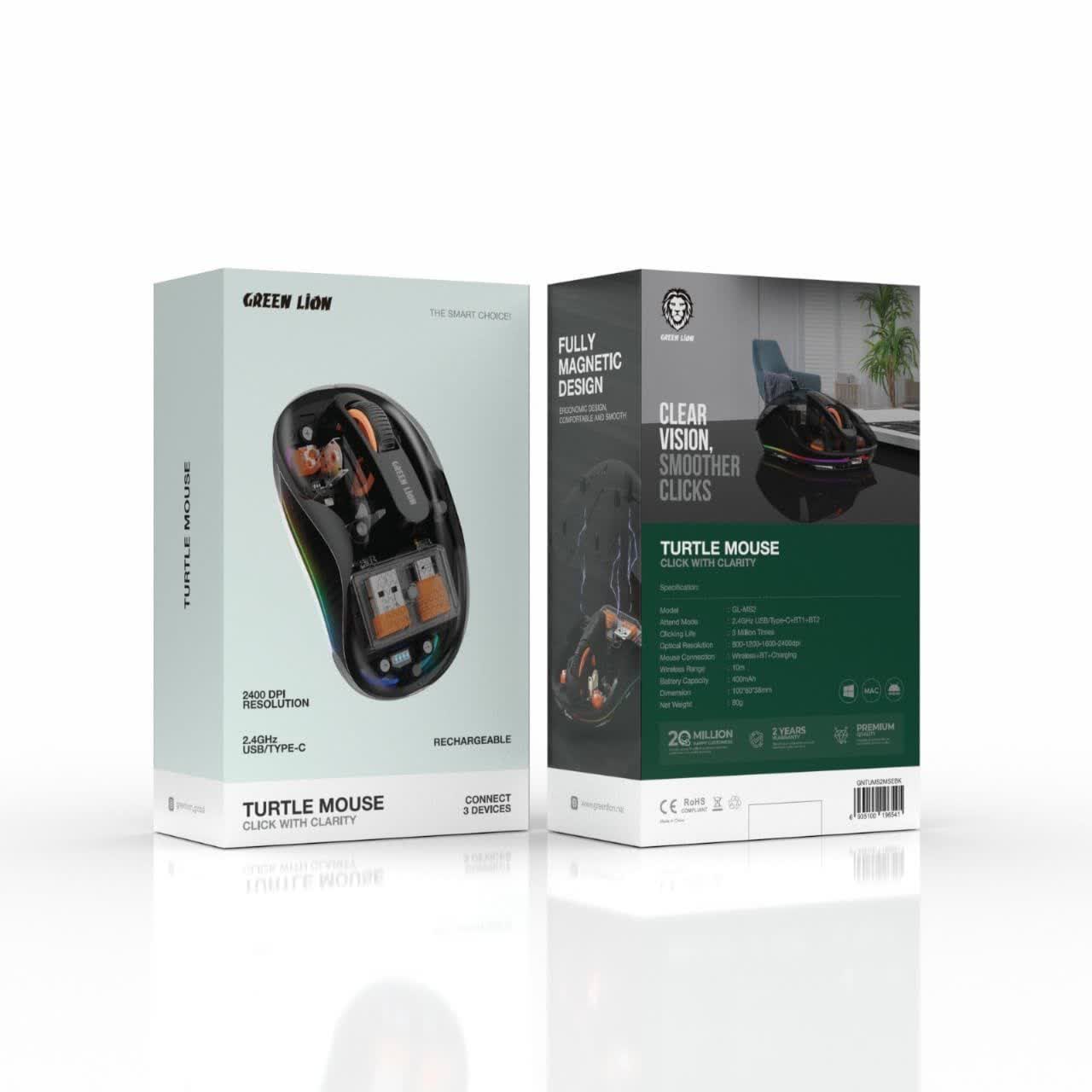 ماوس بیسیم شفاف گرین لاین مدل Turtle با حساسیت ۲۴۰۰DPI