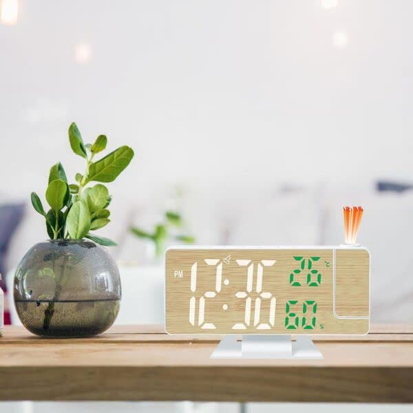 SANRLO Wooden LED Alarm Clock with Temperature, Humidity & Projection Display