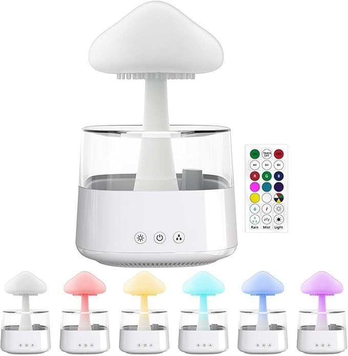 Cloud Rain Mushroom Humidifier with Night Light & Aroma Diffuser